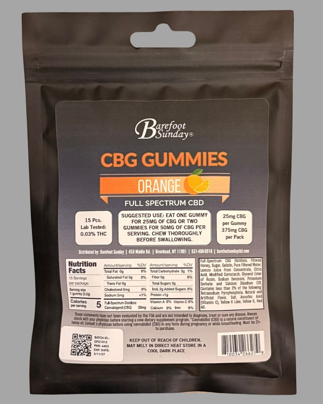 Delicious and convenient, Barefoot Sunday CBG Gummies are an easy way to explore the benefits of this emerging cannabinoid. Each gummy delivers 25 mg of full-spectrum CBG in a naturally flavored orange chew that fits seamlessly into your daily wellness routine.
